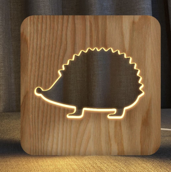 Podaruj sobie lub bliskim uroczą Drewnianą lampkę nocną LED w kształcie jeża i ciesz się jej ciepłym blaskiem każdego wieczoru!