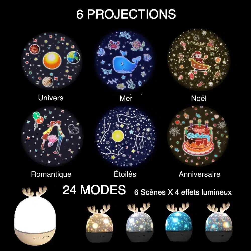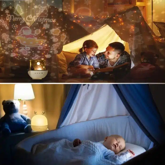Wyobraź sobie, jak Twoje dziecko spokojnie zasypia, otulone delikatnym blaskiem gwiazd, księżyców i unoszących się planet, a wszystko to przy kojących melodiach. Nasz muzyczny projektor gwiazd lampka nocna dla niemowląt to nie tylko zwykła lampka – to magiczna podróż w kosmos, która ukołysze Twojego malucha do snu i pobudzi jego wyobraźnię. Stworzony z myślą o najmłodszych, ten uroczy projektor z motywem renifera przekształci każdy dziecięcy pokój w gwiezdne obserwatorium, oferując bezpieczne i relaksujące środowisko idealne do snu i codziennych zabaw. Dzięki niemu wieczorne rytuały staną się ulubioną częścią dnia, pełną czarów i spokoju.
