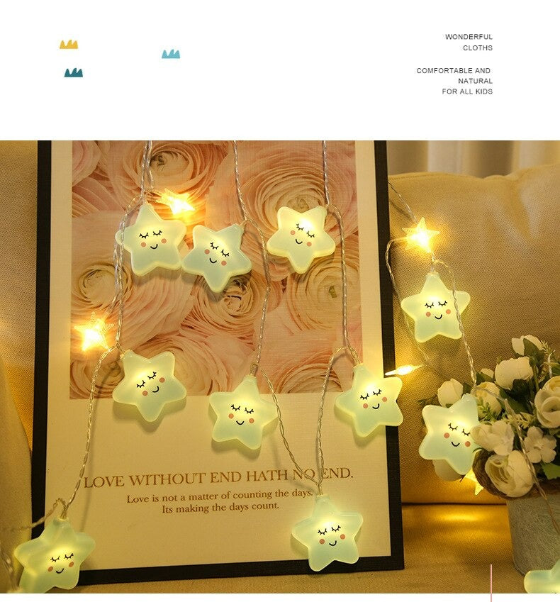 Wprowadź do swojego domu atmosferę spokoju i marzeń dzięki naszej uroczej girlandzie świetlnej. Wyobraź sobie delikatny blask ciepłego światła, które wydobywa się z każdej z tych ślicznych, śpiących gwiazdek, tworząc magiczny nastrój w każdym pokoju. Nasza Niebieska girlanda świetlna LED w gwiazdki to idealny dodatek do pokoju dziecięcego, sypialni, a nawet kącika do czytania. Jej pastelowe, lekko turkusowe gwiazdki z zamkniętymi oczkami i uśmiechniętymi buźkami zapraszają do relaksu i snu, sprawiając, że każdy wieczór staje się bajkowy. To więcej niż tylko oświetlenie – to mała iskierka radości i ukojenia, która przemieni Twoje wnętrze w oazę spokoju.