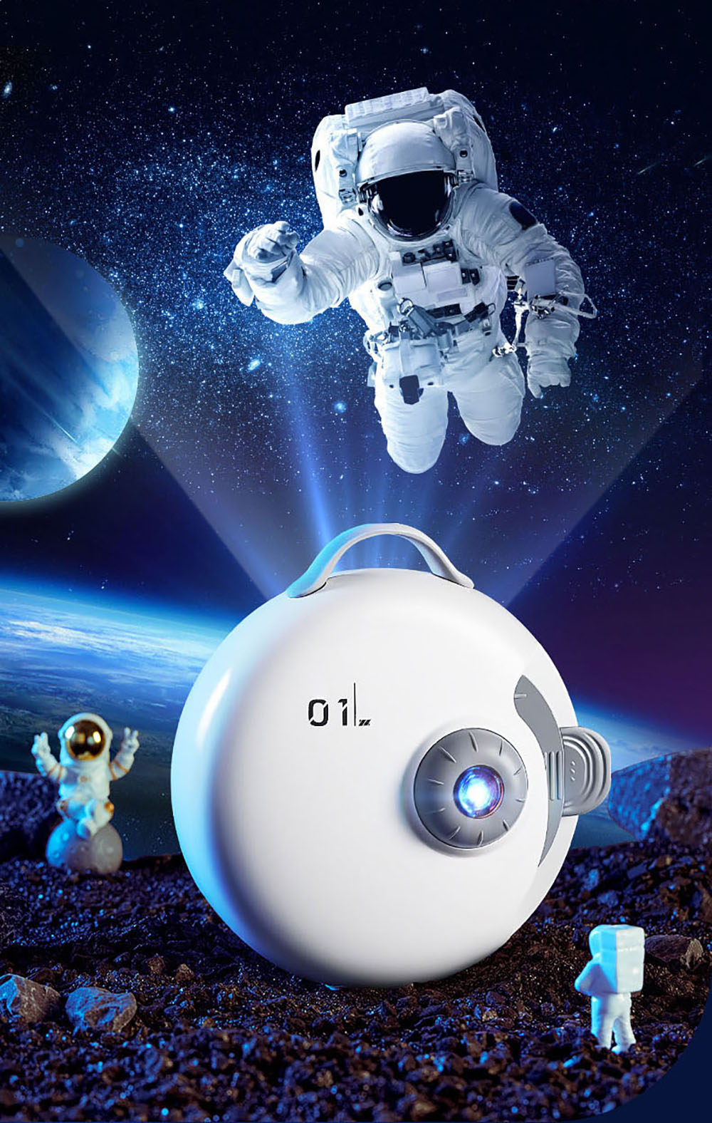 - Wbudowany Głośnik Bluetooth: Łatwo połącz się ze smartfonem i ciesz się muzyką lub dźwiękami natury, które dopełnią kosmiczną wizję.