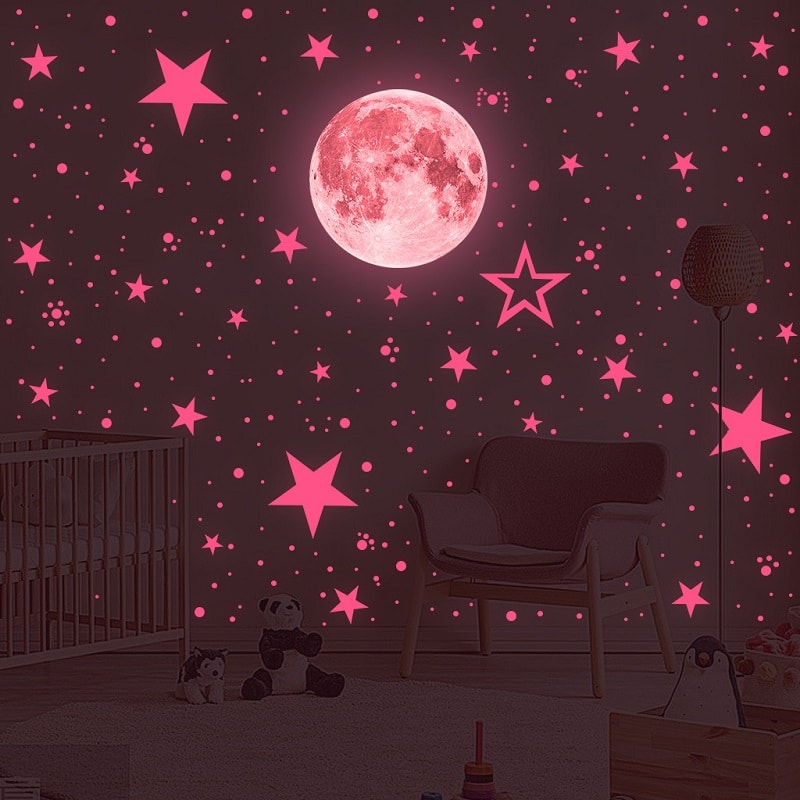 Stwórz magiczny świat z naszymi Różowymi świecącymi naklejkami ściennymi 3D księżyc i gwiazdy!
