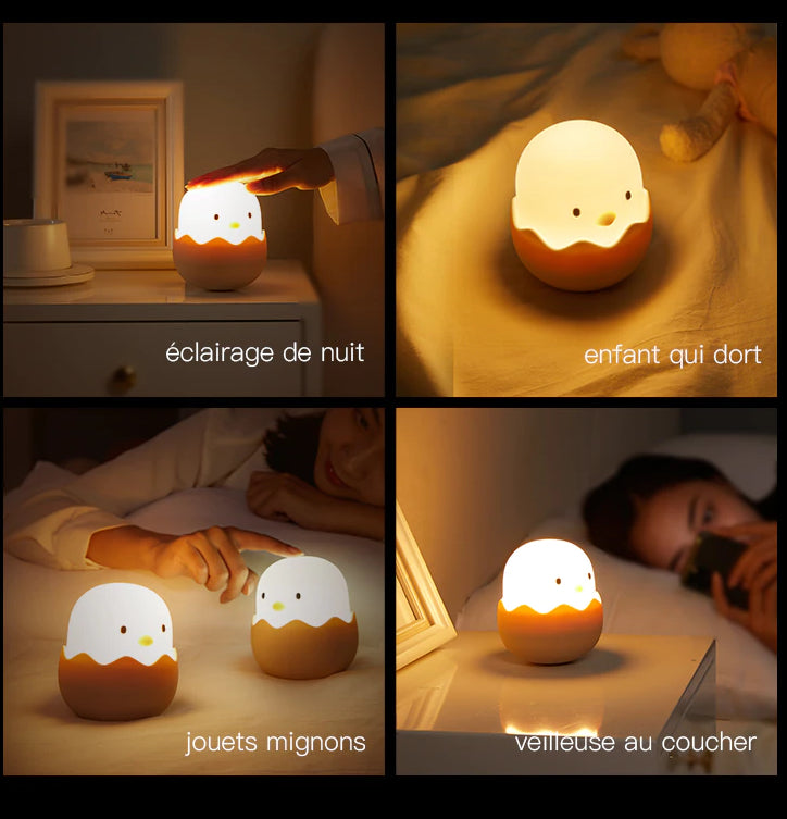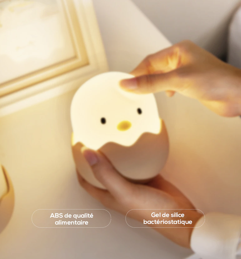 - Uroczy Design Kurczaczka: Ta silikonowa lampka nocna kurczaczek dla dzieci w swojej skorupce jest absolutnie rozkoszna, wprowadzając element zabawy do pokoju.